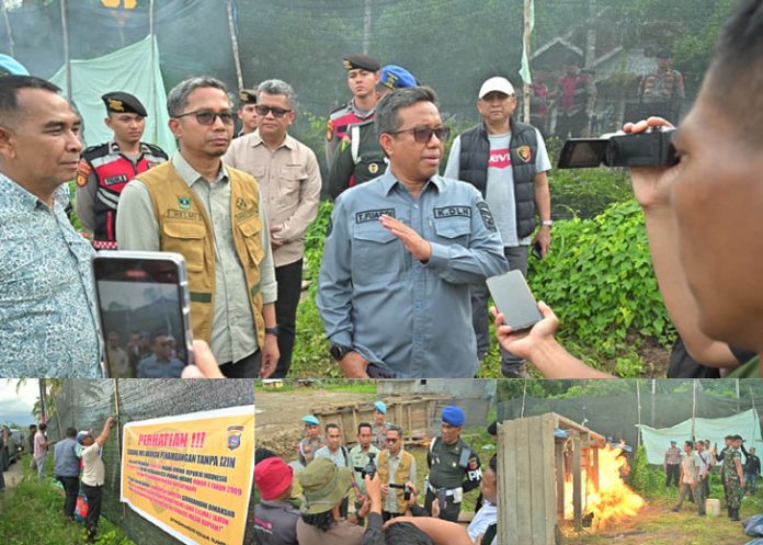 Saat tiba di lokasi, aktivitas penambangan sudah tidak lagi berlangsung. Meski demikian, tim terpadu masih menemukan sejumlah peralatan bekas aktivitas tambang ilegal. Untuk mencegah kegiatan serupa kembali terjadi, tim memasang spanduk larangan serta memusnahkan barang-barang temuan dengan cara dibakar.