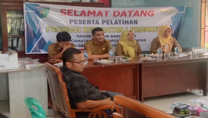 PADANGTIME.COM | Untuk meningkatkan kesadaran dan pemahaman masyarakat terhadap pentingnya hidup bersih dan sehat, Pemerintah Nagari (Pemnag) Dusun Baru Tapan, Kecamatan Basa Ampek Balai Tapan, Kabupaten Pesisir Selatan (Pessel), selenggarakan pelatihan Pola Hidup Bersih dan Sehat (PHBS) Promosi Kesehatan (Promkes).