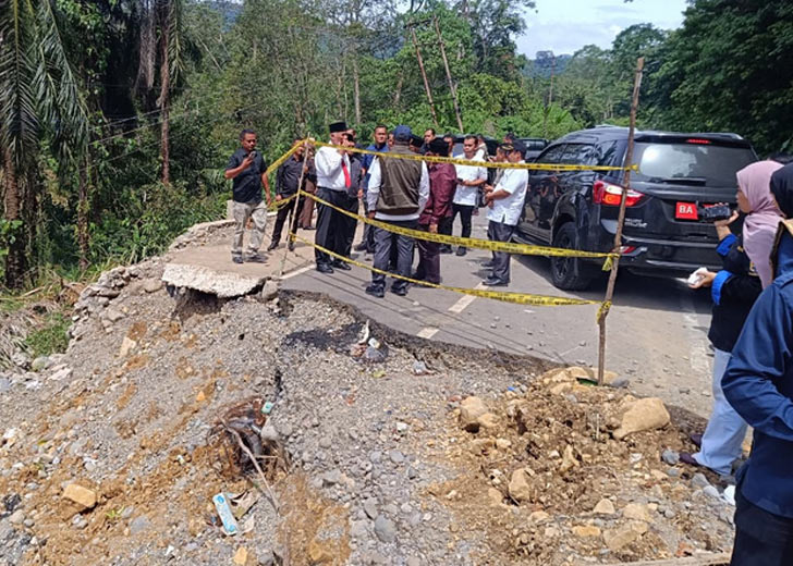 “Ada tiga titik yang mengalami kerusakan cukup parah, dua titik mengalami terban dan satu titik lainnya putus akibat longsoran,” ungkap Mahyeldi saat meninjau lokasi.
