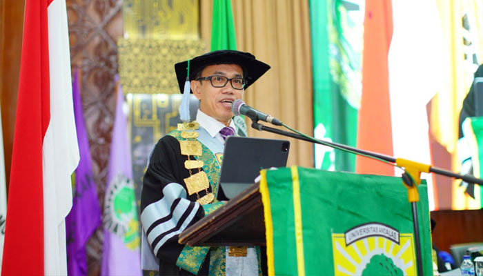 Hal ini disampaikan langsung oleh Rektor Universitas Andalas Efa Yonnedi, Ph. D saat rapat terbuka dalam rangka Dies Natalis ke 68 tahun yang berlangsung di Gedung Convention Hall pada Jumat (13/9).