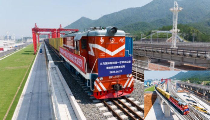 Zhao Jianmin, manajer umum dari Zhejiang Seaport Yiwu Hub Port Co., Ltd., menyoroti peran terminal ini dalam menghubungkan kawasan pedalaman Yiwu dengan Pelabuhan Ningbo-Zhoushan, memungkinkan sistem “satu kali deklarasi, inspeksi, dan pelepasan” untuk barang-barang.