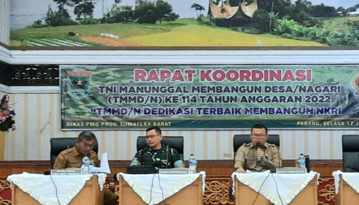 Hal ini terungkap dalam Rapat Koordinasi TMMD/N ke 114 Tahun Anggaran 2022 dengan tema “TMMD/N Dedikasi Terbaik Membangun NKRI” di Aula Kantor Gubernur Sumbar, Selasa (12/7).