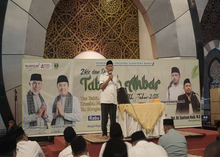 Gubernur Sumbar, Mahyeldi Ansharullah mengajak seluruh jamaah untuk menjadikan akhir tahun sebagai sarana refleksi diri dan hijrah menuju kehidupan yang lebih baik, sekaligus mendoakan agar daerah ini senantiasa berada dalam lindungan Allah SWT dan dijauhkan dari bencana.