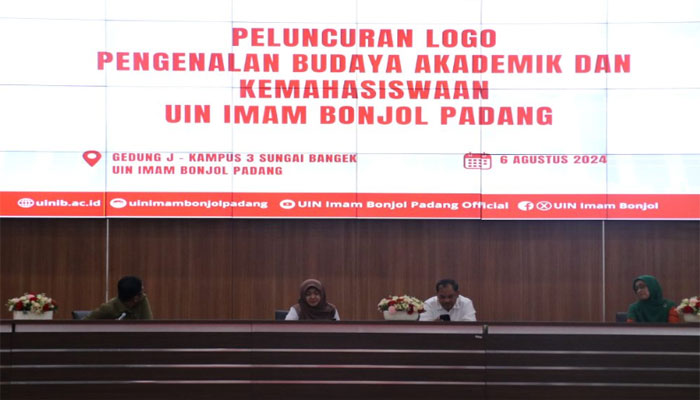 PADANGTIME.COM | UIN Imam Bonjol Padang resmi meluncurkan logo Pengenalan Budaya Akademik dan Kemahasiswaan (PBAK) dalam acara yang digelar di Gedung J, Kampus III Sungai Bangek. Peluncuran ini menjadi simbol semangat baru bagi kegiatan akademik dan kemahasiswaan di universitas tersebut.