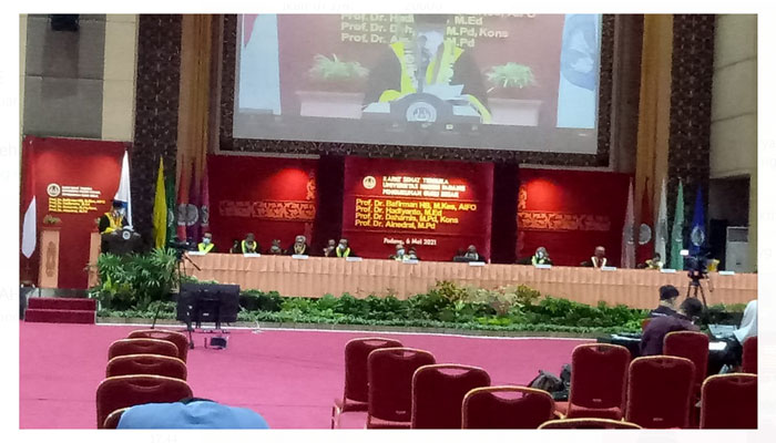 Ketua Senat Universitas Negeri Padang Prof. Dr. Sufyarma Marsidin, M.Pd. dalam sambutannya menyampaikan bahwa keempat orang guru besar yang dikukuhkan adalah Prof. Dr. Bafirman HB, M.Kes., AIFO pada Fakultas Ilmu Keolahragaan, Prof. Dr. Hadiyanto, M.Ed. pada Fakultas Ilmu Pendidikan, Prof. Dr. Daharnis M.Pd., Kons. pada Fakultas Ilmu Pendidikan, Prof. Dr. Alnedral, M.Pd. pada Fakultas Ilmu Keolahragaan.