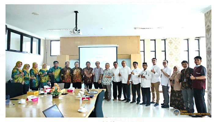 PadangTIME.com- Sebanyak 7 orang rombongan dari Lembaga Pengembangan Pendidikan dan Profesi (LP3) Universitas Negeri Semarang (Unnes) melakukan kegiatan benchmarking tentang Perguruan Tinggi Badan Hukum (PTNBH) ke Lembaga Pengembangan Pembelajaran dan Penjaminan Mutu (LP3M) Universitas Negeri Padang (UNP), Jumat (15/7) di Ruang Rapat SPI UNP lantai III Rektorat UNP Kampus Air Tawar Padang. Rombongan Unnes disambut oleh Wakil Rektor IV UNP Prof. Dr. Yasri, M.S, Sekretaris Universitas Dr. Erianjoni, M.Si, Ketua LP3M Prof. Dr. Jamaris, M. Pd dan Jajarannya (Kepala Pusat dan staf tendik).