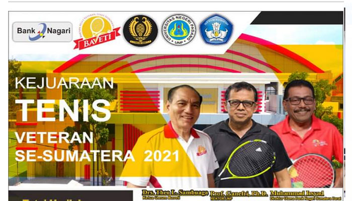 PadangTIME.com – Universitas Negeri Padang bekerjasama dan Bank Nagari mengelar Kejuaraan Tenis Nasional dan Veteran Se- Sumatera untuk memperebutkan Piala Rektor Universitas Negeri Padang. Kejuaraan Tenis Nasional dan Veteran dimulai tanggal 2 s.d 11 April 2021. Kegiatan ini diadakan di lapangan tenis indoor dan outdoor Universitas Negeri Padang. Kejuaraan Nasional ini diikuti lebih kurang 70 orang atlit terbaik di 17 Propinsi di Indonesia diantaranya, Papua, DKI, Kaltim, DIY, Jateng, Sumsel, Bengkulu, Bangka Belitung, Jambi, Sumatera Utara dan Aceh serta Sumatera Barat.