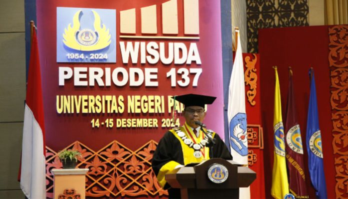 “Atas nama pribadi, pimpinan, dan seluruh civitas akademika Universitas Negeri Padang, saya menyampaikan rasa bahagia dan apresiasi setinggi-tingginya kepada para wisudawan dan wisudawati,” ujar Rektor Krismadinata. Dalam pidatonya yang berjudul “Implementasi Artificial Intelligence (Kecerdasan Buatan) di Ranah Perguruan Tinggi”, ia menyoroti peran penting AI dalam meningkatkan kualitas pendidikan tinggi di Indonesia.