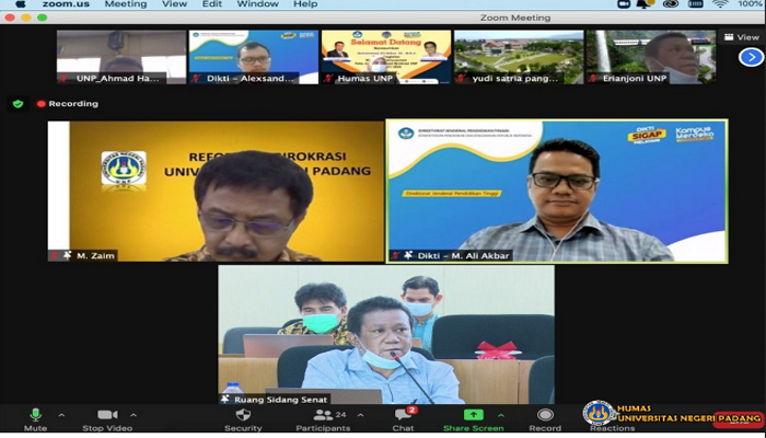 PadangTIME.COM — Universitas Negeri Padang (UNP), Rabu/ 23 Juni 2021 menggelar Workshop Penyusunan Peta Jalan Reformasi Birokrasi (RB) Tahun 2021-2025 di Ruang sidang Senat Universitas Lantai 4 Rektorat UNP Kampus Air Tawar Padang.