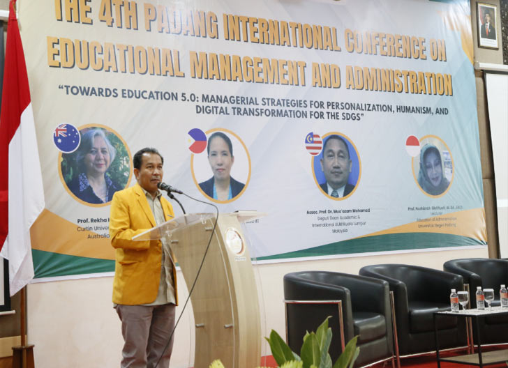 Konferensi dibuka secara resmi oleh Rektor UNP yang diwakili oleh Wakil Rektor Bidang Akademik, Kemahasiswaan, dan Alumni, Prof. Dr. Refnaldi, S.Pd., M.Litt. Dalam perayaannya, ia menyampaikan pentingnya pertemuan nasional dan konferensi internasional ini sebagai ruang berbagi pengetahuan untuk memperkuat tata kelola dan manajemen pendidikan menuju era Pendidikan 5.0.