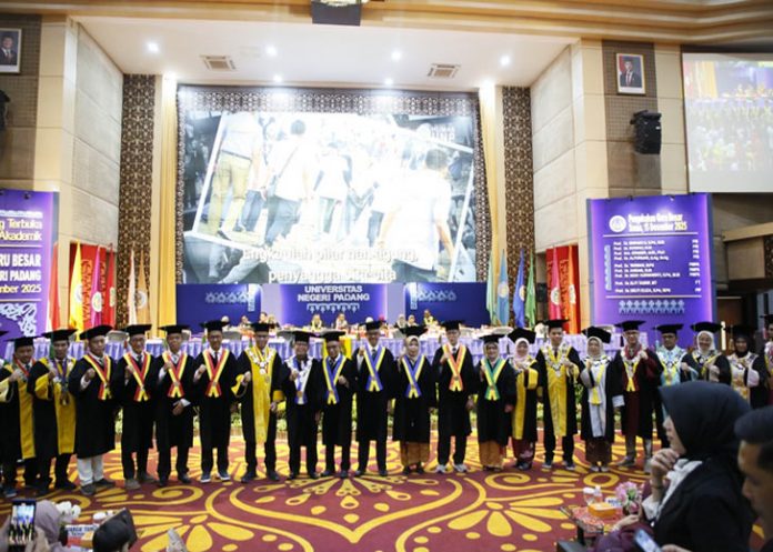 padangtime.com – Universitas Negeri Padang (UNP) kembali mengukuhkan sembilan guru besar dalam Sidang Terbuka Senat Akademik Universitas yang digelar di Auditorium UNP, Senin (15/12/2025). Kesembilan guru besar tersebut terdiri atas tiga orang dari Fakultas Ilmu Sosial (FIS), empat orang dari Fakultas Matematika dan Ilmu Pengetahuan Alam (FMIPA), satu orang dari Fakultas Teknik, dan satu orang dari Fakultas Ilmu Pendidikan (FIP).