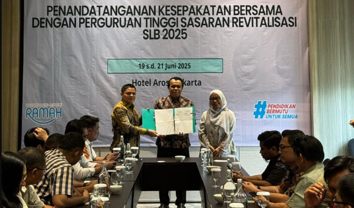 Kegiatan ini diawali dengan penandatangan Kesepakatan Bersama antara Direktorat PKPLK dengan Perguruan Tinggi Sasaran Revitalisasi SLB 2025 yang dilaksanakan pada tanggal 19 – 21 Juni 2025 di Jakarta. Tim dari UNP diwakili oleh Dr. Elfizon, S.Pd.,M.Pd.T., selaku Wakil Dekan Fakultas Teknik UNP, yang hadir untuk mengikuti bimtek dan menyaksikan penandatanganan Kesepakatan Bersama oleh Direktur PKPLK, Saryadi, ST, MBA Pada kesempatan yang sama juga dilakukan penandatanganan kontrak Swakelola Tipe II antara Ketua Tim/Koordinator Pelaksana Swakelola dari UNP, Ir. Risma Apdeni, ST, MT dan Pejabat Penandatangan Kontrak PKPLK, Mursalat, S.Kom., M.Pd. Selanjutnya dari UNP juga ikut hadir fasilitator kegiatan, Prasetia Dego Candra, ST, MT, yang merupakan alumni Teknik Sipil FT UNP.