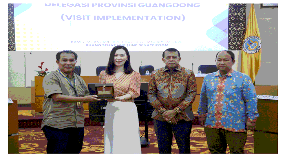Padang TIME.com – Universitas Negeri Padang (UNP), salah satu perguruan tinggi terbesar dan tertua di Sumatera, terus berupaya meningkatkan daya saing global. Salah satu upayanya diwujudkan dengan menerima kunjungan delegasi dari sejumlah perguruan tinggi di Provinsi Guangdong, Republik Rakyat Tiongkok, di Ruang Sidang Senat Gedung Rektorat dan Research Center Lantai 4, Kamis (22/1).