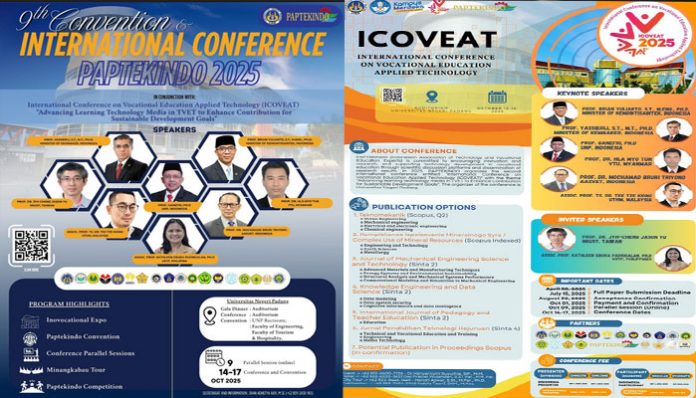 Padang — Universitas Negeri Padang (UNP) bersiap tampil maksimal di panggung nasional dan internasional. Oktober 2025 mendatang, UNP akan menjadi tuan rumah PAPTEKINDO 2025, ajang konvensi dan konferensi besar yang mempertemukan para ahli, praktisi, dan inovator di bidang pendidikan kejuruan dan teknologi dari seluruh Indonesia bahkan luar negeri.