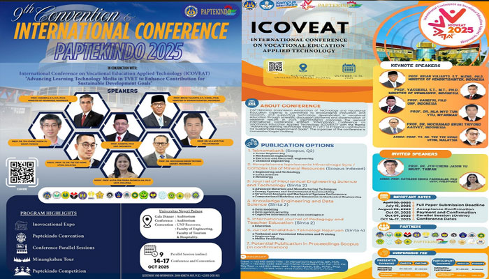 PAPTEKINDO 2025 tak sekadar konferensi akademik. Agenda utamanya akan diwarnai oleh pameran inovasi (Inovocational Expo), kompetisi antarperguruan tinggi vokasi, hingga program budaya Minangkabau Tour sebuah pengalaman wisata edukatif yang memadukan kekayaan tradisi dan teknologi.