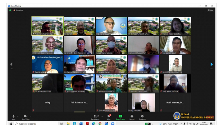 PadangTIME.com – -Program Studi Ilmu Lingkungan (S2 dan S3) Pascasarjana Universitas Negeri Padang (UNP), sukses sebagai tuan rumah penyelenggara Rapat Kerja Nasional (Rakernas) Perkumpulan Program Studi Ilmu Lingkungan Indonesia (Pepsili), Sabtu/ 3 Juli 2021, yang digelar secara daring dengan aplikasi Zoom Meeting. Acara ini diikuti sebanyak 50 peserta mewakili 40 Perguruan Tinggi di Indonesia, diantaranya dari UI, UGM, IPB, Unbraw, UNS, Unand, Unri, UNJ, UNP, Untan, Unhaleo, Uncen, Undana, Unkhair dan sebagainya.