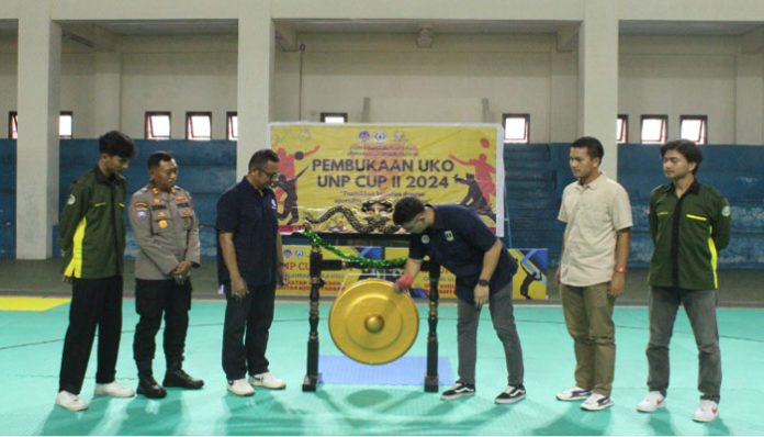 Padang – Unit Kegiatan Olahraga (UKO) Universitas Negeri Padang (UNP) sukses menyelenggarakan UKO UNP CUP II 2024, sebuah kompetisi olahraga mahasiswa tingkat Sumatera Barat. Ajang ini berlangsung di GOR Tennis Indoor Fakultas Ilmu Keolahragaan (FIK) UNP pada tanggal 5-14 Oktober 2024. Dengan tema “Tunjukkan Keahlian dengan Sportivitas dan Raihlah Kejayaan,” kegiatan ini diikuti oleh 352 atlet yang berlaga di tiga cabang olahraga, yakni pencak silat, bola voli, dan bulutangkis.