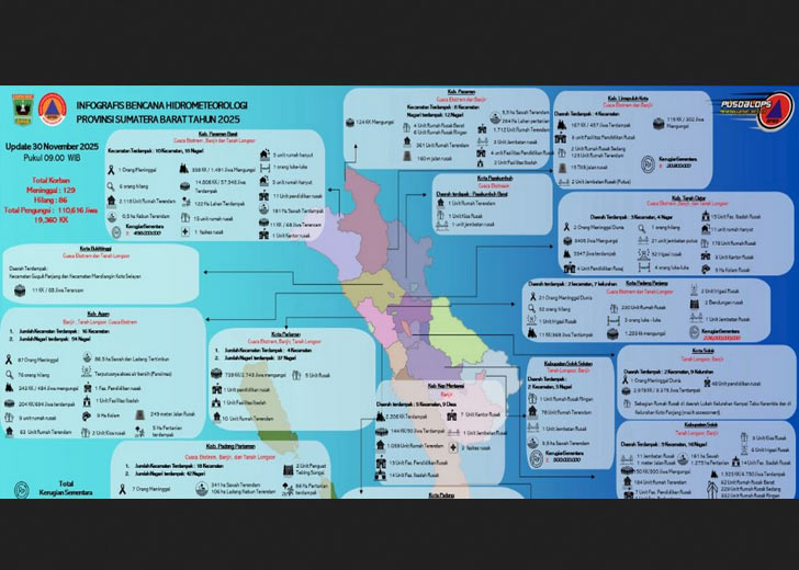 Ia menegaskan, data akan terus diperbarui sesuai kondisi terbaru. Dengan masuknya laporan terbaru dari masing-masing daerah tersebut, maka total jumlah korban bencana hidrometeorologi di Sumbar hingga saat ini berjumlah 129 orang meninggal dunia dan 86 orang masih dinyatakan hilang.
