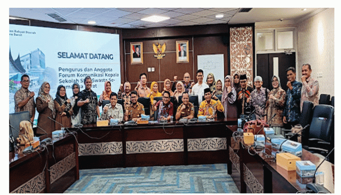 padangtime.com – Forum Komunikasi Kepala Sekolah (FKKS) SMK Swasta se-Sumatera Barat lakukan audiensi dengan Wakil Ketua DPRD Provinsi Sumatera Barat, Evi Yandri Rajo Budiman, S.IP Rajo Budiman, Senin, 20/1/2025, pukul 14.00 WIB di Ruang Rapat Pimpinan DPRD Provinsi Sumatera Barat.
