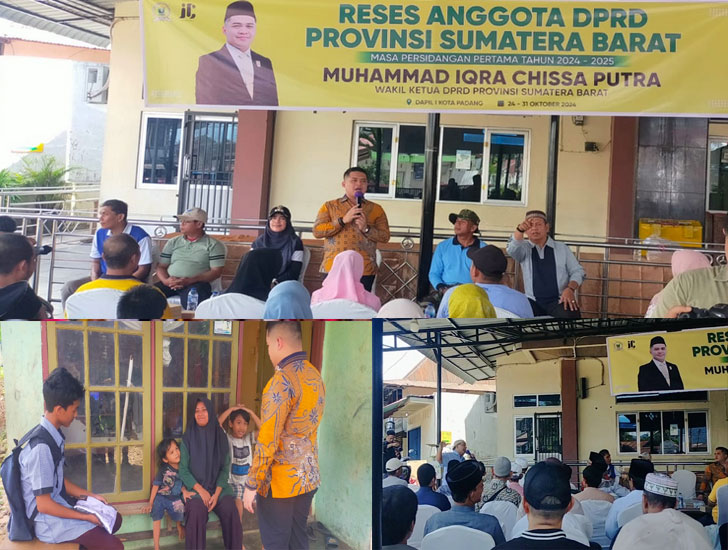 PADANGTIME.COM | Wakil Ketua DPRD Provinsi Sumatera Barat, M. Iqra Chissa Putra, S.St, MM, menggelar kegiatan reses masa persidangan pertama tadi tahun 2024-2025 Dapil Sumbar I Kota Padang di halaman mesjid Nurul Huda Kelurahan Cupak Tangah, Kecamatan Pauh (27/10/2024).