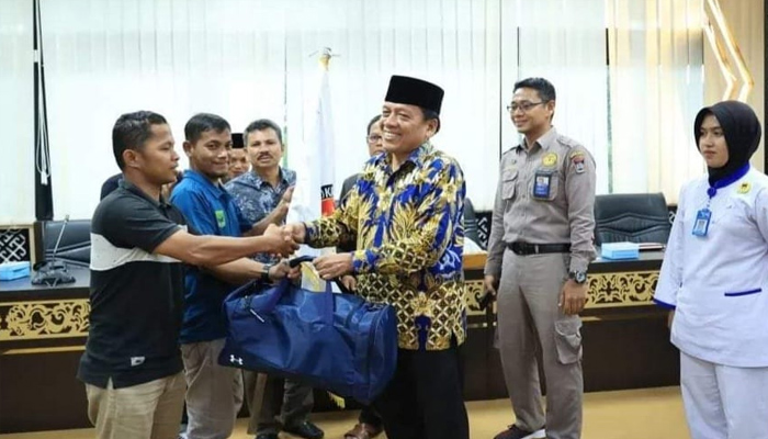 Dengan semangat, Suwirpen Suib melepas kontingen Karate Shokaido Sumatera Barat yang akan berlaga pada Kejuaraan Nasional (Kejurnas) Piala Bergilir Bupati Bengkalis dan Piala Tetap Ketum Shokaido Riau.