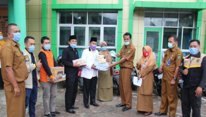 Padang TIME.com-Wakil Ketua I Dewan Perwakilan Rakyat Darah Danny Ismaya, SP bersama salah seorang anggota DPRD Pasaman yang di dampingi Gusman, SH Kasubag Humas Protokol dan Publikasi DPRD Pasaman, Naswan Efendi, SH Kasubag Persidangan dan Risalah DPRD Pasaman menyerahkan bantuan berupa Alat Pelindung Diri (APD) buat tenaga medis di Rumag Sakit Umum Daerah (RSUD) Lubuk Sikaping diterima langsung oleh Direktur RSUD Lubuk Sikaping dr. Yong Marzuhaili, Puskesmas Lubuk Sikapin diterima langsung oleh Kepala Puskesmas Lubuk Sikaping Fitri Darwini. S. ST, Puskesmas Sundatar diterima langsung Kepala Puskesmas Sundatar Edhy Suandi, Senin (06/04/2020).