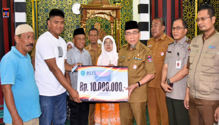 Penyerahan bantuan dilakukan langsung oleh Wakil Wali Kota Padang Maigus Nasir, di Masjid Darussalam, Jalan Pemancungan, Kelurahan Pasar Gadang, Selasa (14/10/2025).