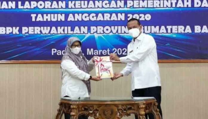 PadangTIME.com – Walikota Pariaman, Genius Umar menyerahkan Laporan Keuangan Pemerintah Daerah (LKPD) Tahun 2020 kepada Badan Pemeriksaan Keuangan (BPK) di Aula BPK Republik Indonesia Perwakilan Provinsi Sumatera Barat, Selasa (24/3/2020).