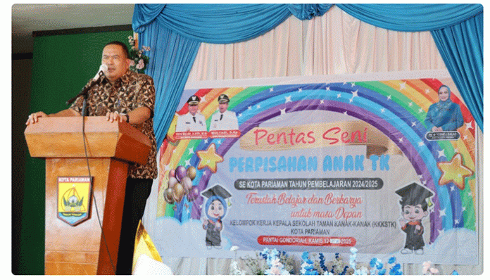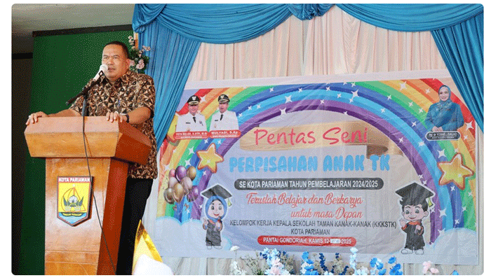 Padang TIME,com- Wali Kota Pariaman, Yota Balad mengapresiasi atas terselenggaranya Pentas Seni Perpisahan Anak Taman Kanak-Kanak (TK) se Kota Pariaman Tahun Pembelajaran 2024/2025 yang digelar oleh Kelompok Kerja Kepala Sekolah Taman Kanak-Kanak (KKKTK) Kota Pariaman di Pentas Seni Pantai Gandoriah, Kamis (12/6/2025).