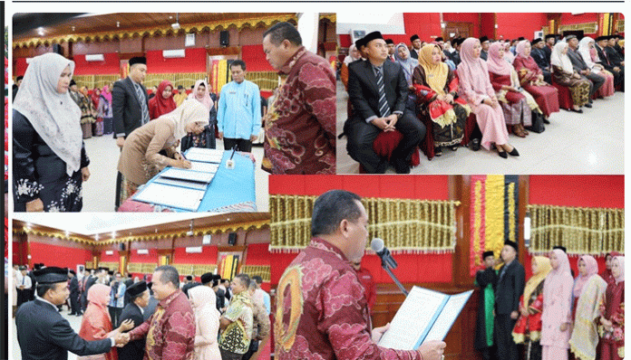 Padang TIME.com – Wali Kota Pariaman, Yota Balad melantik dan mengambil sumpah 104 Pejabat Administrator, Pengawas dan Kepala Puskesmas dilingkungan Pemerintah Kota (pemko) Pariaman di Aula Balai Kota Pariaman, Jum’at (22/8).