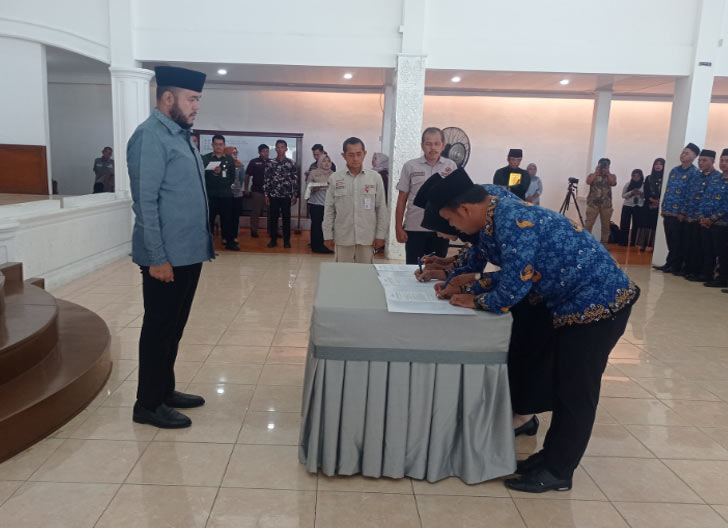 Kepala BKPSDM Kota Padang, Mairizon menyebut, pada kesempatan ini ada 8 PNS Ikatan Dinas Tahun 2024 yang diambil sumpahnya dan penyerahan SK untuk 126 Pegawai Pemerintah dengan Perjanjian Kerja (PPPK) Pemko Padang. (Taufik/Nindy/Wiki).