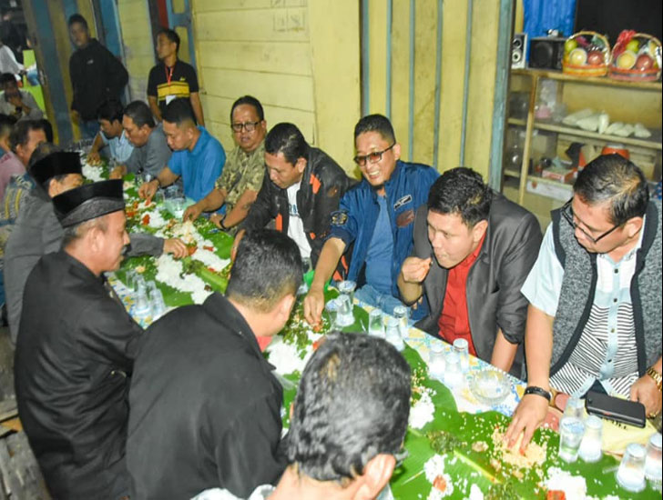 PadangTIME.com | Usai menghadiri Malam Puncak Peringatan HUT RI ke-77 dan Pengukuhan Pengurus Ikatan Pemuda Simpang Akhirat Kuranji (IPSAK) periode 2022-2027 di Simpang Akhirat Kecamatan Kuranji, Wali Kota Padang Hendri Septa berbaur bersama sejumlah tokoh masyarakat Kuranji makan beralaskan daun pisang, Jumat malam (27/8/2022).