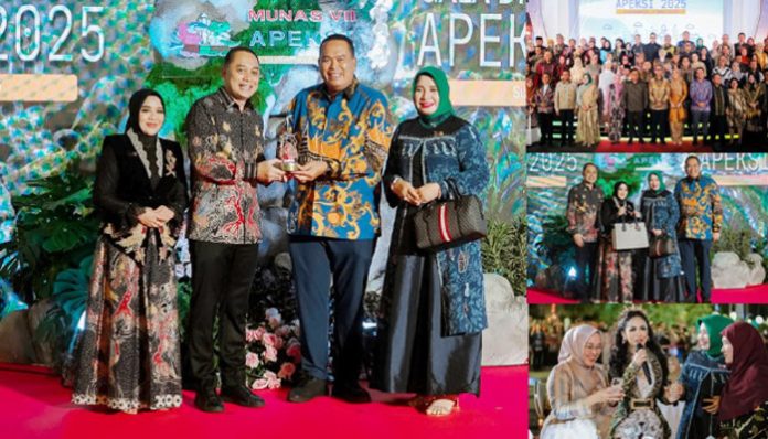 padangtime.com — Wali Kota Pariaman Yota Balad bersama istri, Ny. Yosneli Balad, menghadiri Gala Dinner sebagai bagian dari rangkaian kegiatan Musyawarah Nasional (Munas) VII Asosiasi Pemerintah Kota Seluruh Indonesia (APEKSI) tahun 2025 yang diselenggarakan di Kota Surabaya. Acara berlangsung meriah di halaman Taman Surya Kompleks Kantor Wali Kota Surabaya, Rabu malam (7/5).