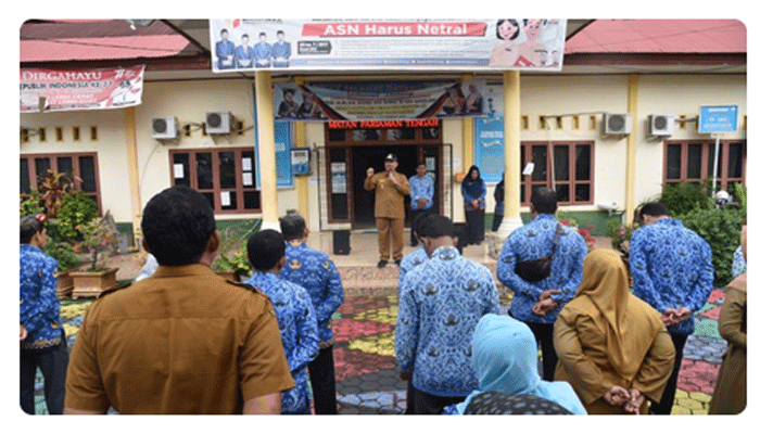 Padang TIME.com -Memantau tingkat kedisiplinan Aparatur Sipil Negara (ASN) dilingkungan Kecamatan Pariaman Tengah Kota Pariaman, Wakil Walikota Pariaman Mardison Mahyuddin melakukan inspeksi mendadak (sidak) saat apel pagi di Halaman Kantor Camat Pariaman Tengah Kota Pariaman, Selasa (17/1).