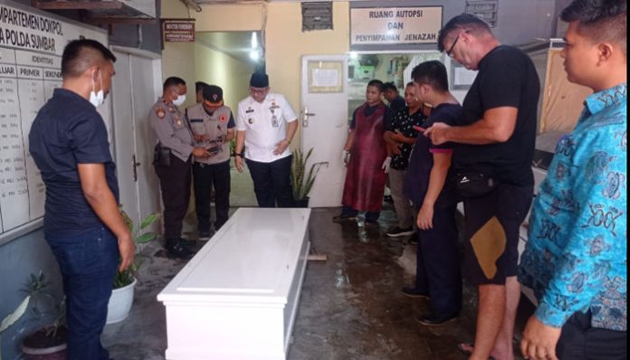 Jenazah Thuleau Florian Jean Justin dilepas di RS Bhayangkara Padang. Saat melepas jenazah, Pj Wali Kota Padang Andree Algamar menyerahkan sertifikat kematian kepada perwakilan keluarga korban. (Taufik/Charlie)