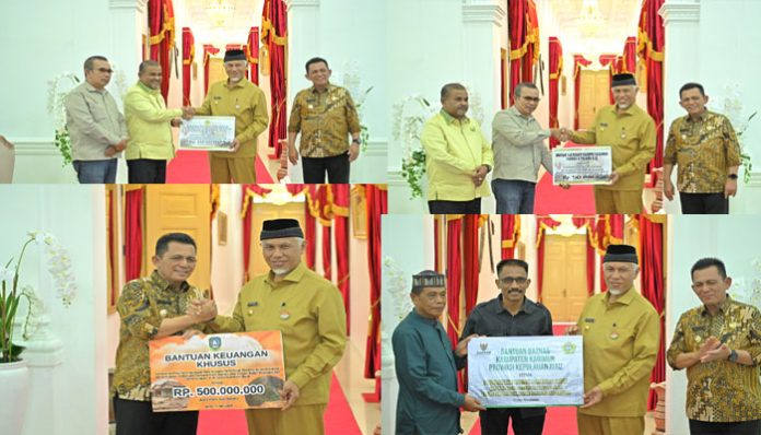 PADANGTIME.COM | Gubernur Sumatera Barat (Sumbar), Mahyeldi Ansharullah menerima penyaluran bantuan penanganan bencana senilai Rp900 juta lebih dari Gubernur Kepulauan Riau (Kepri) Ansar Ahmad beserta rombongan di Istana Gubernuran, Senin (03/06/2024).
