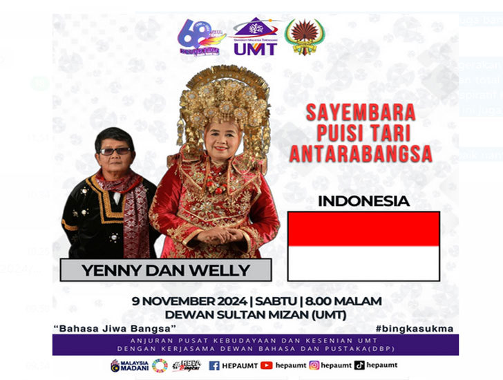 Untuk diketahui, pelajar dan alumni Universiti Malaysia Terengganu melalui Pusat Kebudayaan dan Kesenian menganjurkan Sayembara Puisi Tari Antarbangsa UMT 2024. Program ini bertujuan untuk memartabatkan kegiatan sastera khususnya puisi di kalangan mahasiswa di Malaysia.
