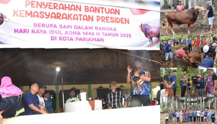 “Bantuan Sapi kurban bapak Presiden Prabowo Subianto ini, merupakan yang Perdana untuk warga Kota Pariaman, dengan berat mencapai 802 Kg berasal dari peternak lokal kita, asal Dusun Kampung Sato, Desa Pauh Timur, Kecamatan Pariaman Tengah, Bima,” ujar Yota Balad.