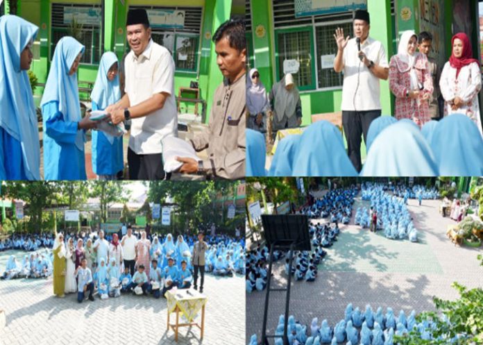 padangtime.com – Wali Kota Pariaman Yota Balad serahkan bantuan paket sembako kepada siswa/wi kurang mampu, sekaligus secara resmi menutup kegiatan Pesantren Ramadan 1447 H di SMP Negeri 2 Pariaman, serta menyerahkan hadiah dari berbagai lomba yang diadakan oleh sekolah tersebut, bertempat di halaman SMP N 2 Pariaman, Desa Kampung Baru, Kecamatan Pariaman Tengah, Jumat (13/3/2026).