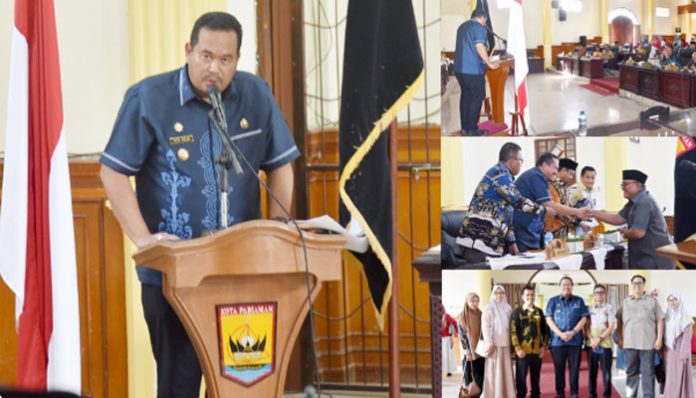 Hal tersebut disampaikan Wali Kota Pariaman Yota Balad Ketika memberikan sambutan pada Rapat Paripurna Penyampaian Tanggapan Walikota atas Pandangan Umum Fraksi-Fraksi DPRD Kota Pariaman terhadap Nota Keuangan Walikota Pariaman tentang Rancangan Peraturan Daerah (Ranperda) Pertanggungjawaban Pelaksanaan APBD Kota Pariaman Tahun Anggaran (TA) 2024, di ruang sidang utama Gedung DPRD Kota Pariaman, Desa Manggung, Kecamatan Pariaman utara, Kamis sore (5/6/2025).